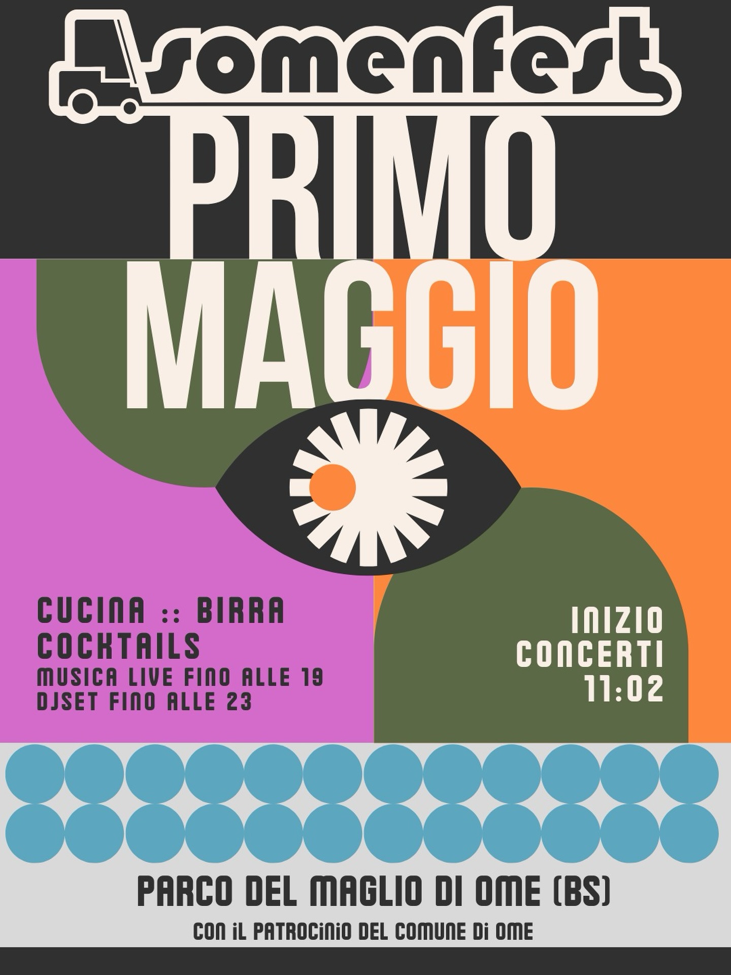 On Friday, May 1st from 11.00 am at Parco del Maglio in Ome, the sOMEnfest will take place, with concerts, entertainment and street food.