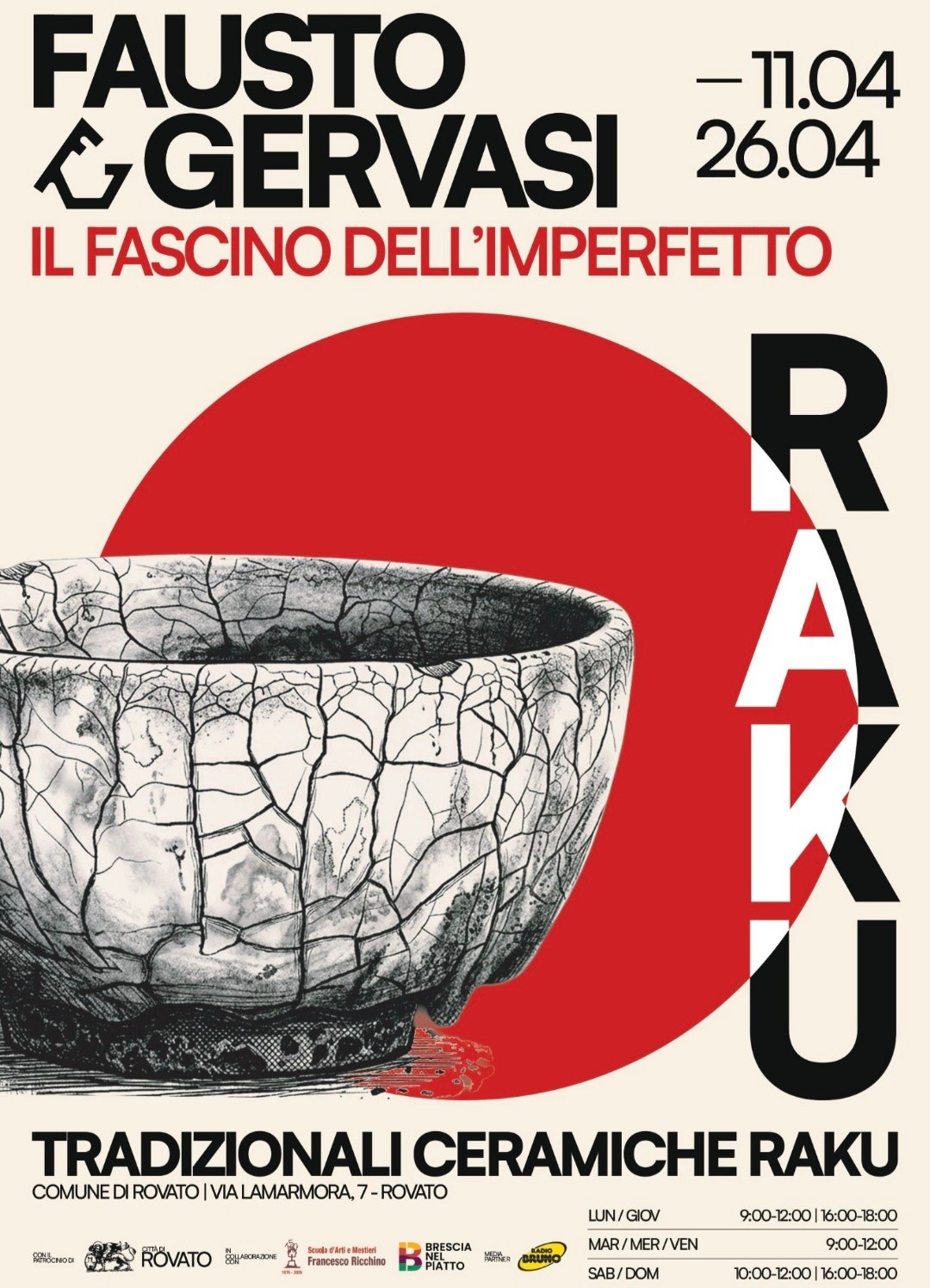 Da sabato 11 a domenica 26 aprile, nel Comune di Rovato, avrà luogo l’esposizione “Il fascino dell’imperfetto” di Fausto Gervasi, dedicata alle tradizionali ceramiche Raku.